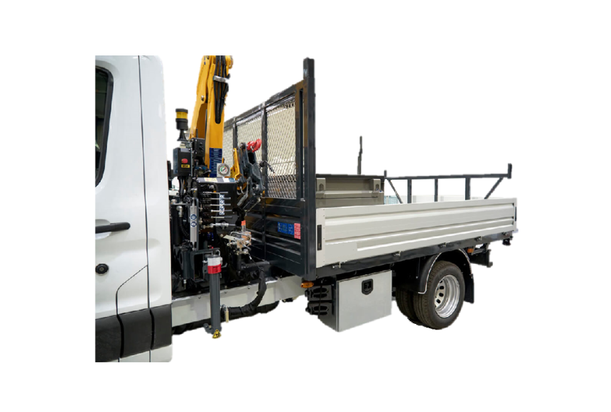 - Gru idraulica Bonfiglioli modello A2 con due sfili idraulici: momento massimo di sollevamento 2,55 TM; sfili idraulici con lunghezza massima di 6100 mm in orizzontale e capacità in punta di 400 kg; portata fuori cassone limitata per CE a 990 kg;
