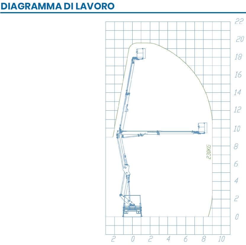 1. Cestello in alluminio: 1400 x 700 x 1100 mm. Portata massima 230Kg