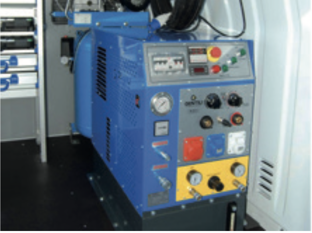 Centralina oleodinamica Funziona da gruppo elettrogeno, compressore, impianto idraulico e anche da saldatrice tutto inserito in un blocco molto compatto e funzionale.